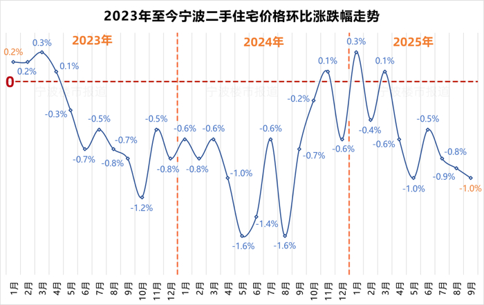 二手住宅(以下简称“二手房”)方面,九月,宁波二手房销售价格环比下跌1%,较八月再扩大0.1个百分点,为七月以来连续第3个月跌幅扩大。