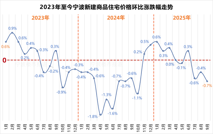 九月,宁波新建商品住宅(以下简称“新房”)销售价格连续第三个月环比下跌,跌幅0.7%,较八月扩大0.3个百分点。