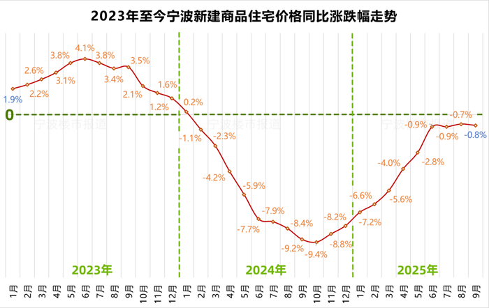 值得注意的是,九月,宁波新房销售价格同比跌幅,出现自去年11月以来的首次扩大——较八月扩大0.1个百分点,下跌0.8%。