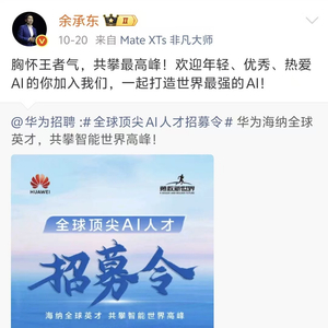 华为内部人士对记者表示,此次调整意味着华为将AI置于未来十年发展的核心地位,通过IRB机制确保战略资源向AI领域高强度倾斜。近期,余承东还在社交平台招聘全球顶尖AI人才,称要“打造世界最强AI。”