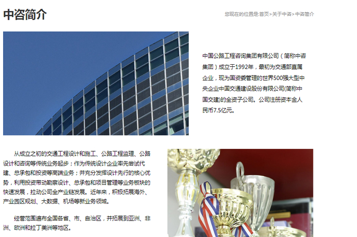 中咨集团官网介绍,现为国资委管理的世界500强大型中央企业中国交通建设股份有限公司(简称中国交建)的全资子公司。其业务范围包括交通工程设计和施工、公路工程监理、公路设计和咨询、代建、总承包和投资等。其下设30余家子、分公司,员工总数2000余人。