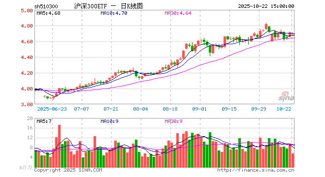 10月22日沪深300ETF(510300)份额减少1.62亿份,最新份额896.31亿份,最新规模4210.98亿元