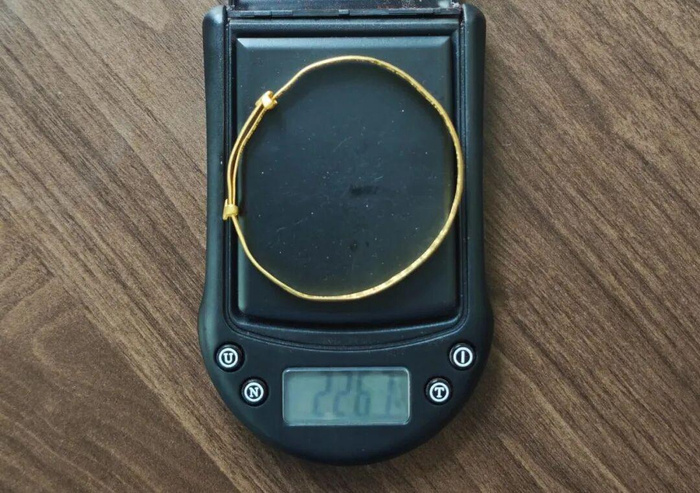 民警到达现场后对手镯进行称重,重量为22.67克,对比2013年手镯购买发票上的重量,足足少了5.33克,立即将于某带回派出所内。