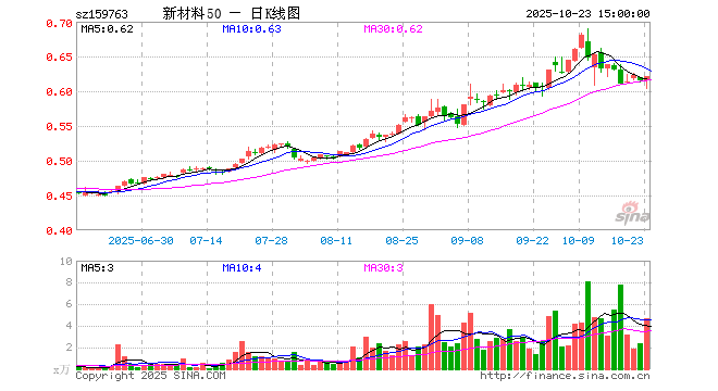 10月23日新材料ETF基金(159763)份额增加100.00万份,最新份额1.14亿份,最新规模7046.47万元