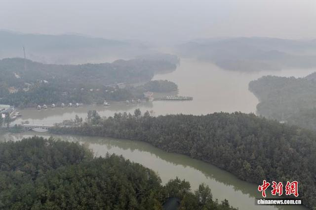 10月24日,在航拍视角下,河南南阳五朵山笼罩在晨雾之中,云雾与峰峦相映,宛如一幅浑然天成的水墨丹青。(无人机照片)中新社记者 李超庆 摄