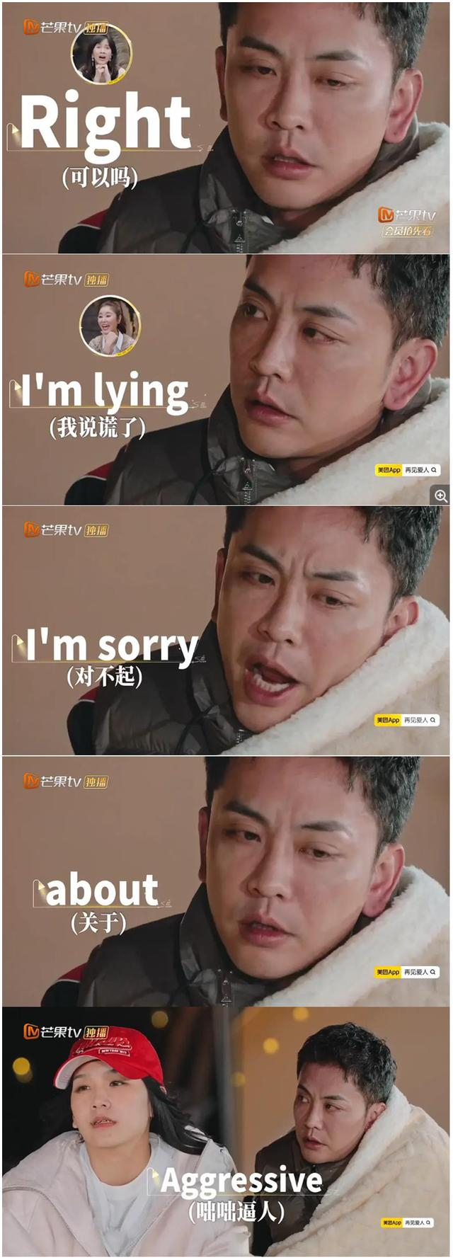 最先出圈的便是第二对出场的“rapper夫妇”——何美延与TSong梁老师。这对夫妻作为职业说唱歌手,吵架是他们的“专业舒适区”,两人宛如江湖高手过招的freestyle,句句直戳对方弱点,一方深受打击的同时还出于职业本能内心复盘一下“punchline”的技术细节。随时随地开始的电光火石高强度“battle”,连胡彦斌都不由感叹一句“身体好”。吵到高潮处互相一句rap“切口”——Come on man!让观察室里的Papi酱“眼泪都要笑出来了”。网络上“跟着梁老师学英语”的二创视频也随之疯传。