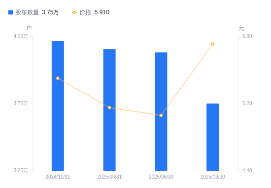 近一年(2024年9月30日至2025年9月30日),雪天盐业A股股东户数从4.41万户,减低至3.75万户,降幅15.00%,区间股价上涨4.36%。