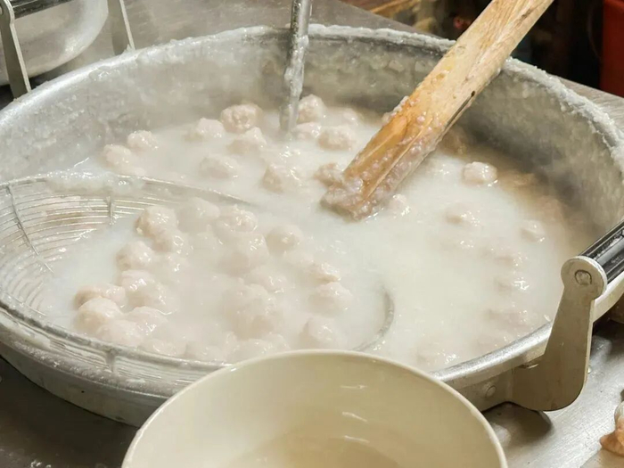 芹菜塘转角处有一家四眼仔鱼丸店,它做鱼丸已经41年了,是街坊们私藏的“宝藏食堂”。店家每天会进100斤鲮鱼,从凌晨5点就开始杀鱼、去皮、起骨、剁肉,再手工捏成鱼丸蒸熟,每一颗鱼丸都饱满紧实,能吃得到鱼肉的鲜味。