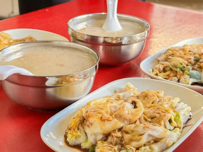 清晨到店,点上一份肉蛋肠再合适不过。糯滑的肠粉裹着鲜嫩肉馅,浇上加了烧鹅汁的秘制酱油,刚端上桌还冒着热气,迫不及待吃上一口,满是幸福感。除了肠粉,蒸面、咸面、云吞面也很受欢迎,茅根粥和柴鱼花生粥更是性价比之选,1元至2元就能喝到一大碗,很难让人不心动。