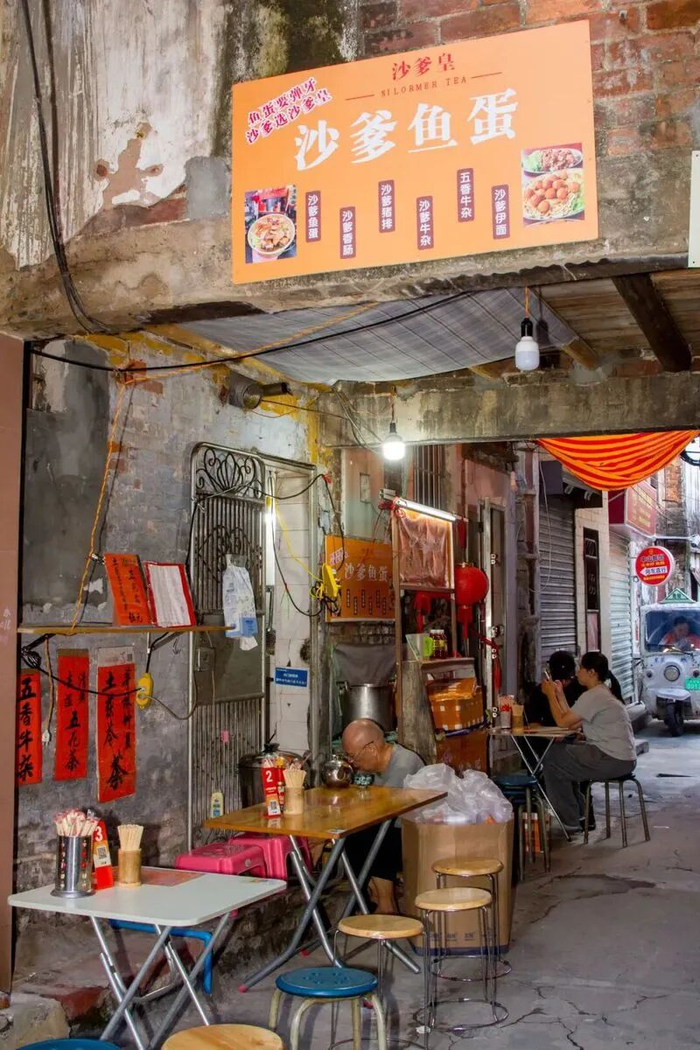 除了沙爹鱼蛋,炸猪排伊面也很绝,猪排外酥里嫩,蘸着沙爹酱吃,能带来双重满足。店里还有足料的沙爹牛杂、清热的五花茶、清甜的茅根甘蔗水。虽然藏在巷子里,但它凭味道圈了不少粉,全靠街坊们口耳相传。