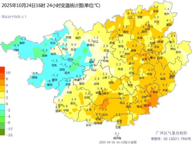 桂南大部地区有日平均气温