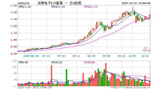 10月24日消费电子ETF富国(561100)份额增加200.00万份,最新份额7.35亿份,最新规模10.06亿元