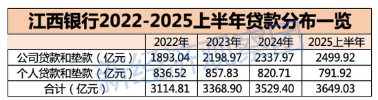 上述疑虑也在江西银行的贷款分布中得到进一步印证。现阶段,江西银行仍以公司贷款和垫款为主,近三年占比始终在60%以上。但在个人贷款和垫款领域,个人消费贷增长显著,由2022年的34.14亿元增长至2025上半年的103.61亿元。三年半时间里,增长幅度高达203.49%。