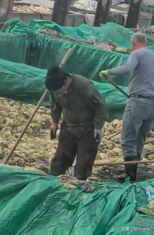 这位辽宁网友发布在社交平台的视频显示,拍摄于一家酸菜企业的生产车间。视频中,一男子站在酸菜池中用钢叉将酸菜翻动并铲至一旁,男子在工作过程中全程抽烟,并在酸菜池中随口乱吐。
