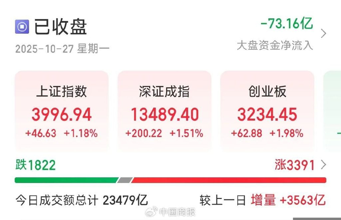 中国商报(记者 马文博)沸腾了!10月27日,A股迎来周一“开门红”!