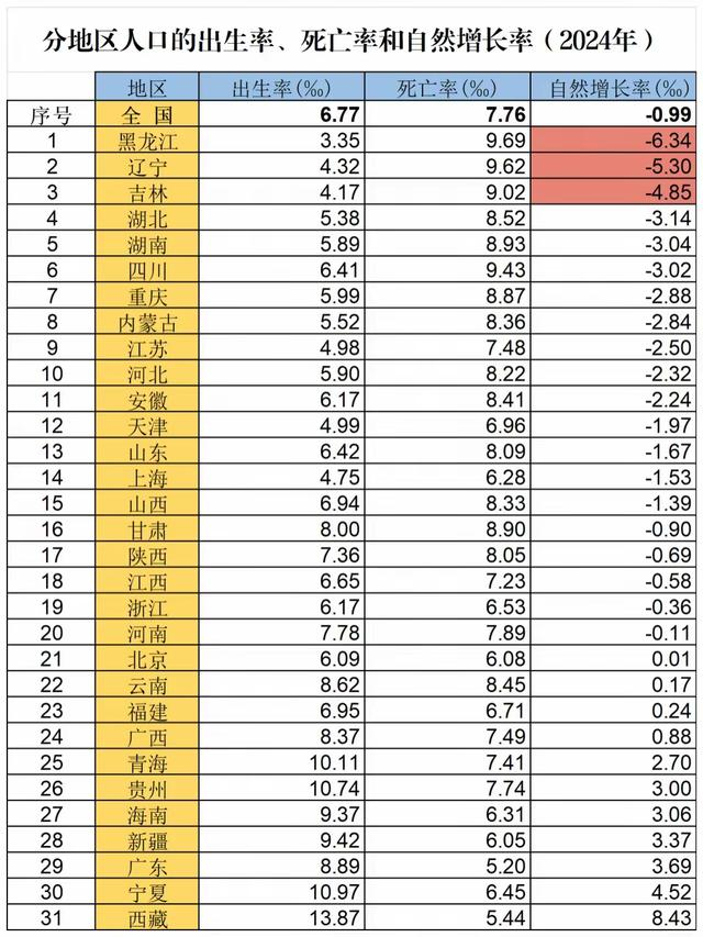 2024年31省份出生人口数据公布了,有人说“人口东北化”正在蔓延,是真的吗?