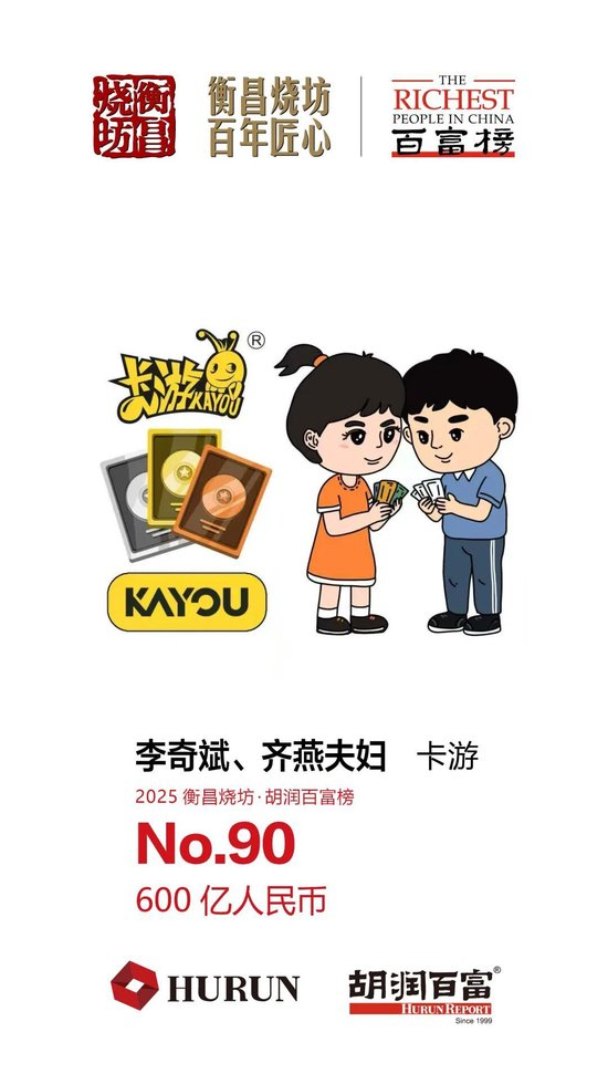 “新消费领域,随着新模式、新创意的涌现及情绪消费需求的驱动,盲盒经济代表泡泡玛特38岁的王宁财富比去年增加1500多亿元,进入榜单前20,同时位列今年企业家财富增长前三;集换式卡牌龙头卡游的李奇斌、齐燕夫妇以600亿元首次上榜,跻身前100;奶茶赛道中,霸王茶姬30岁的张俊杰以135亿元财富首次上榜。黄金板块,在金价大幅上涨的红利下,老铺黄金的徐高明以695亿元财富首次上榜,位居新人之首,他打造了一个中国黄金奢侈品牌,成为行业标杆企业。”