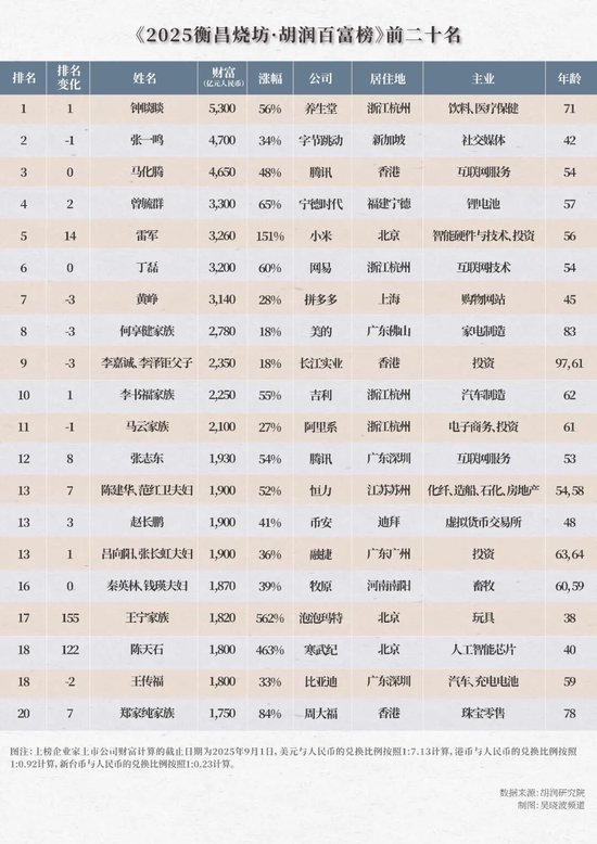 2025胡润百富榜丨追平马云,钟睒睒第四次当选中国首富