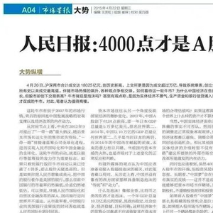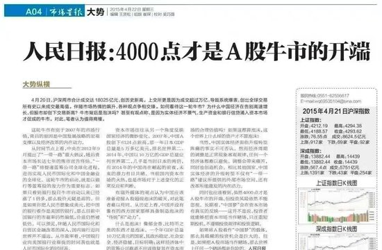 十年前的2015年4月,人民日报曾发文说,4000点才是A股牛市的开端。