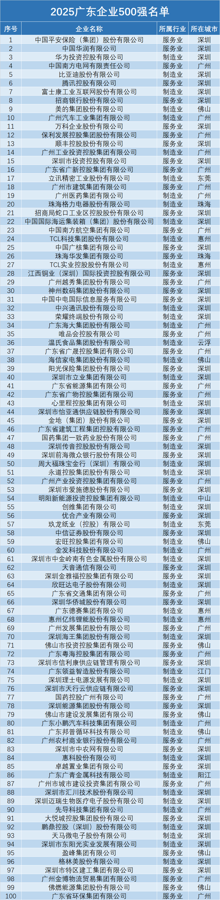 广东500强企业正加速向创新驱动与价值创造跃迁,成为新质生产力发展的关键载体。10月29日,广东省企业联合会、广东省企业家协会发布《2025广东500强企业发展报告》。2025广东企业500强名单显示,中国平安、华润、华为、南方电网、比亚迪、腾讯、富士康、招商银行、美的、广汽位列前十。