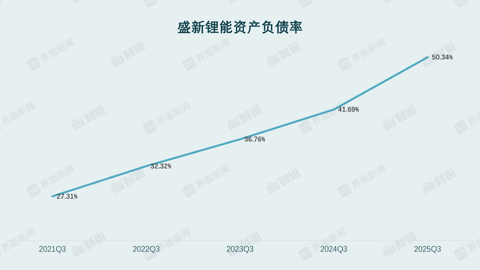 债务结构进一步放大了偿债压力。界面新闻拆解公司有息负债发现,截至 9 月底,盛新锂能短期借款达 45.83 亿元,一年内到期的非流动负债 15.13 亿元,两者合计 60.96 亿元;而长期借款仅 22 亿元,债务结构呈现 “短债长用” 的典型风险特征。
