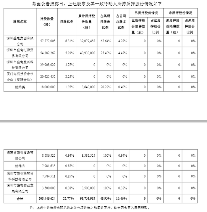 股东层面的高比例质押则为公司股权稳定性埋下隐患。截至 10 月 25 日,盛新锂能股东及一致行动人合计持有 2.08 亿股(占总股本 22.77%),累计质押 9574 万股股份,占其持股比例的 46%,占公司总股本的 10.46%。