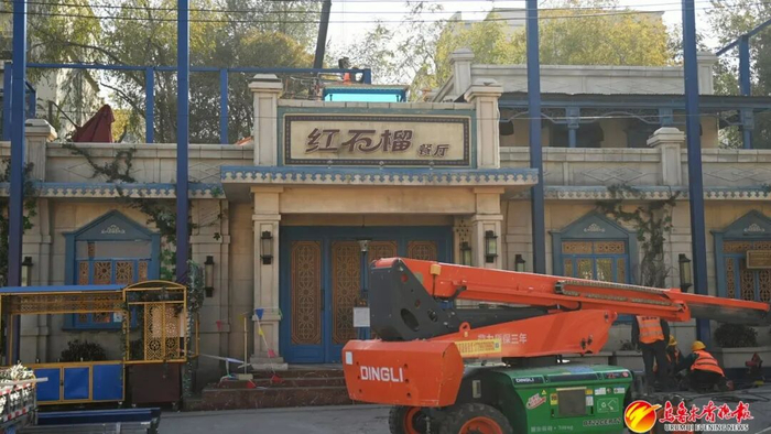 10月30日,记者来到红石榴餐厅,工作人员正在室内紧锣密鼓施工。附近过往游客不时拍照打卡,期待拍摄布景地尽快开放。