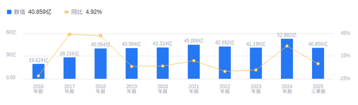 偿债能力方面,2025 年三季度资产负债率为 64.95%,高于去年同期的 64.41%,也高于行业平均的 61.02%。从盈利能力看,2025 年三季度毛利率为 35.76%,高于去年同期的 34.03%,且远高于行业平均的 14.56%。