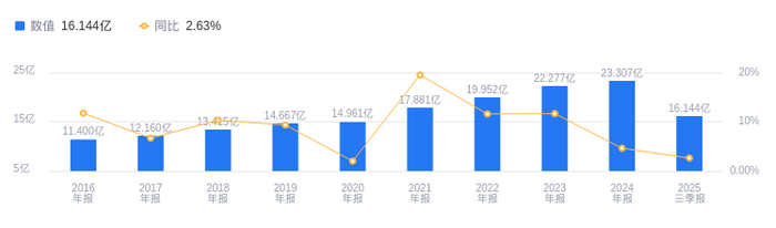 偿债能力方面,2025年三季度资产负债率为31.99%,高于去年同期的28.09%,也高于行业平均的29.42%,这表明公司偿债压力有所上升且高于行业平均水平。从盈利能力看,2025年三季度毛利率为57.28%,略高于去年同期的56.99%,但低于行业平均的63.59%,说明公司盈利能力有待进一步提升。
