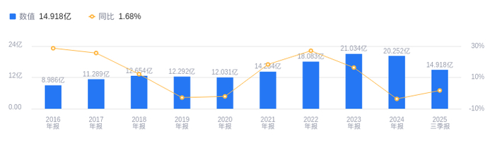 偿债能力方面,2025年三季度公司资产负债率为36.04%,去年同期为43.71%,低于行业平均39.06%,表明公司偿债能力有所增强且优于行业平均水平。从盈利能力看,2025年三季度公司毛利率为23.78%,去年同期为25.06%,高于行业平均21.53%,虽较去年同期有所下降,但仍高于行业平均。