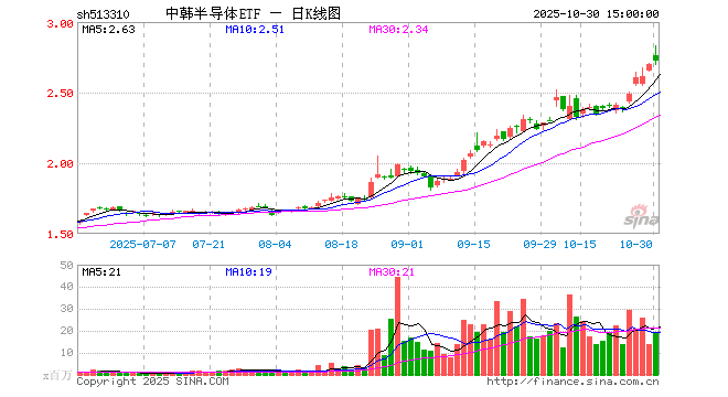 10月30日中韩半导体ETF(513310)份额增加500.00万份,最新份额12.85亿份,最新规模32.70亿元