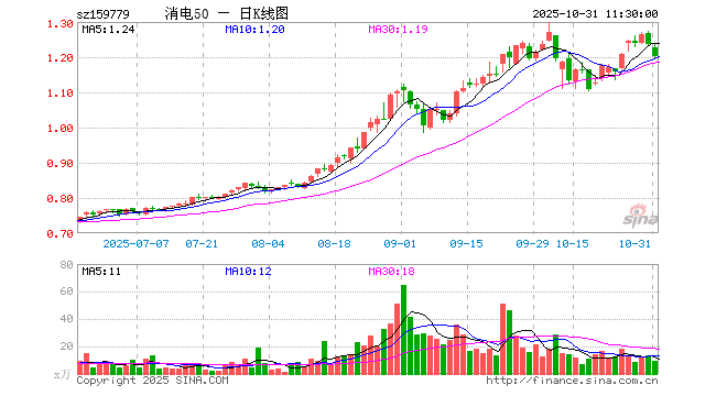 消费电子50ETF(159779)跌2.67%,半日成交额1144.22万元