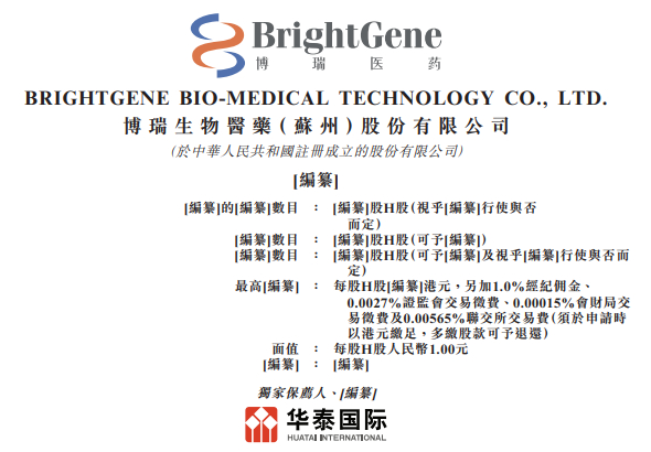 2025年10月30日,来自江苏苏州市苏州工业园区的A股上市公司博瑞生物医药(苏州)股份有限公司BRIGHTGENE BIO-MEDICAL TECHNOLOGY CO., LTD.(下称博瑞医药)在港交所递交招股书,拟在香港主板上市。