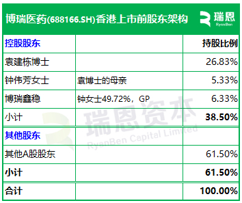 招股书显示,博瑞医药在香港上市前的股东架构中,