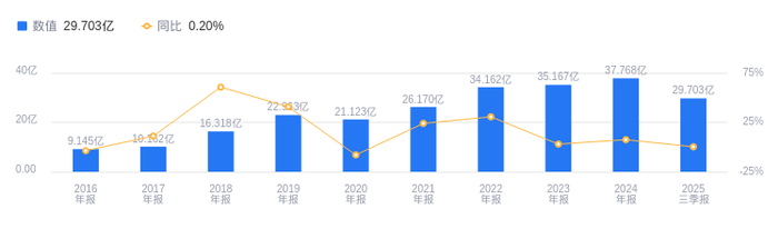 偿债能力方面,2025年三季度公司资产负债率为48.13%,去年同期为43.87%,高于行业平均46.36%。从盈利能力看,2025年三季度公司毛利率为41.65%,去年同期为43.11%,高于行业平均16.52%。