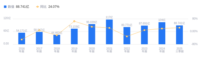 2025年三季度,招商证券营业收入达182.44亿元,在行业45家公司中排名第9。行业第一名中信证券营收558.15亿元,第二名国泰海通营收458.92亿元,行业平均数为94.29亿元,中位数为44.23亿元。同期,净利润为88.74亿元,行业排名第7,行业第一名中信证券净利润239.16亿元,第二名国泰海通净利润230.59亿元,行业平均数为38.81亿元,中位数为17.09亿元。