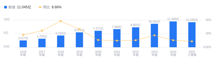 偿债能力方面,2025年三季度恩华药业资产负债率为11.06%,低于去年同期的12.61%,且远低于行业平均的35.26%,显示出良好的偿债能力。从盈利能力看,当期毛利率为76.02%,高于去年同期的73.75%,也高于行业平均的57.17%,盈利能力较强。