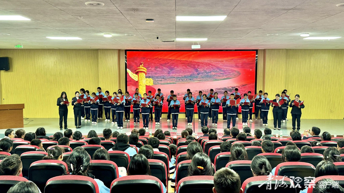 在师生表演环节,《将进酒》《黄河颂》《义勇军进行曲》等节目将阅读之美、家国情怀与民族团结融为一体。师生用歌声与诗朗诵,展现了新时代少年积极向上、奋发进取的精神风貌。