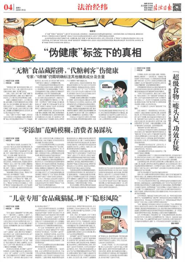 法治日报整版关注“伪健康”标签下的真相:零添加、儿童专用……藏着多少猫腻?