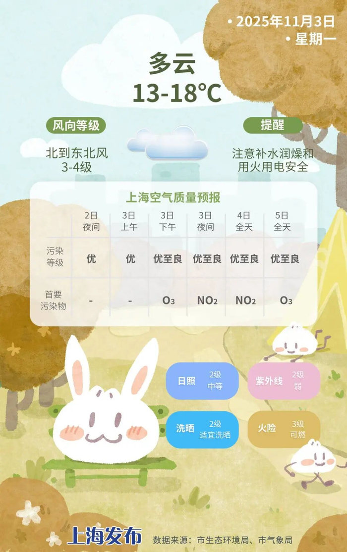 这波冷空气实力有限,来去匆匆,周三起最高气温回升至20度+,最低气温也在16度上下。不过晴好暂被打破,有短时小雨入场。周四和周五阳光再度当家,恢复舒适秋日氛围。而下一轮雨水也追得很紧,下周双休日云系再度增多,还将有一次小雨过程,提醒大家及时关注天气变化。