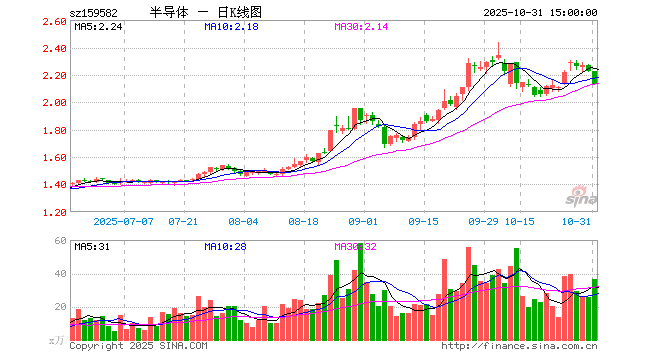 10月31日半导体产业ETF(159582)份额增加1500.00万份,最新份额2.00亿份,最新规模4.25亿元