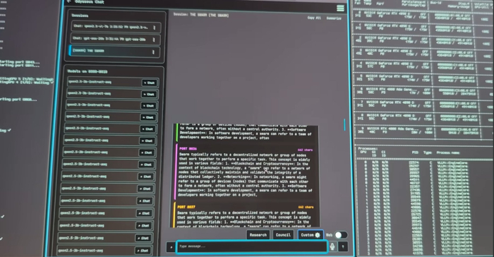 在最新的视频中,PewDiePie 成功构建了一个定制的、自我托管的 AI 界面。该 UI 完全运行在他自己的 PC 上,由一个 10 GPU 配置驱动,并配备了一个能真正「投票」选出最佳回复的聊天机器人团队。