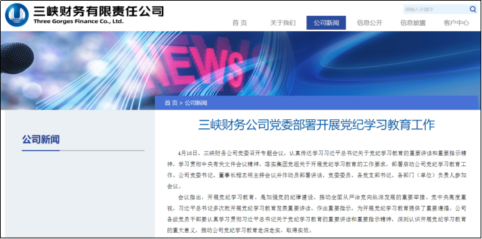 2024年6月,三峡财务公司官方网站还曾发布程志明主持党纪学习教育工作会议并作动员部署讲话的相关动态。