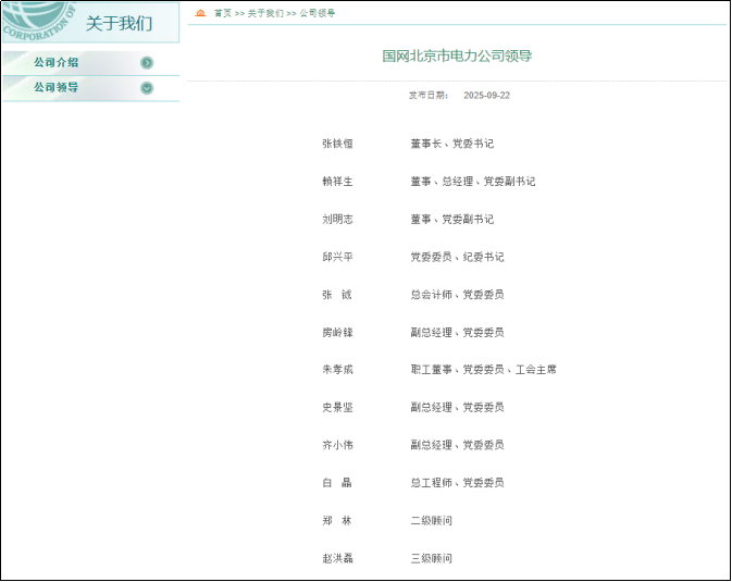 近日,据国网北京电力官网更新的领导班子名单显示,房岭锋已任国网北京电力副总经理、党委委员,李百顺、常世平、路俊海、周建方已不在顾问名单中。