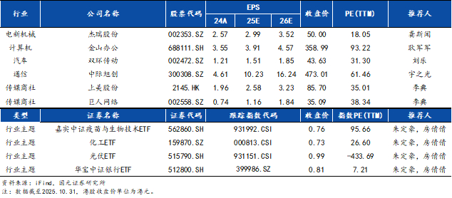 国元月度金股(2025年11月)