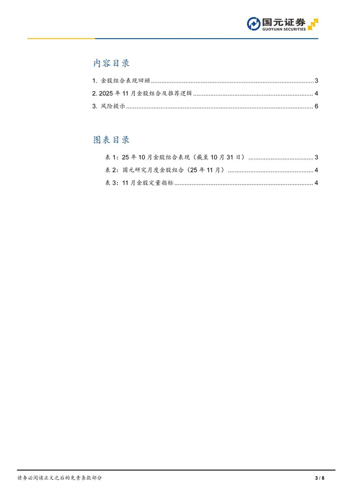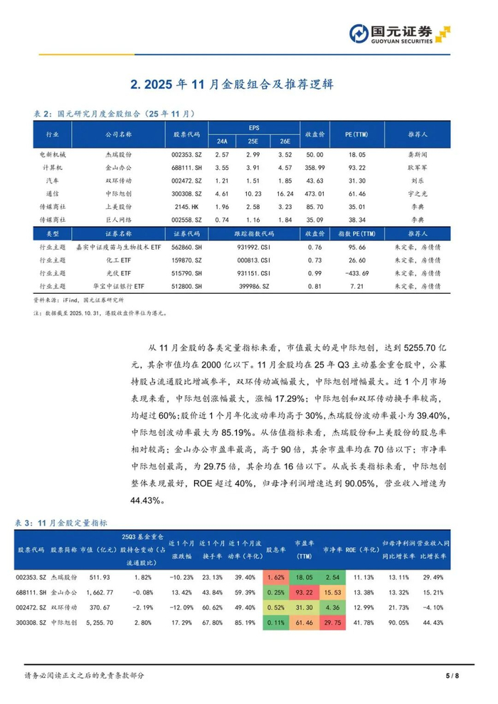 【国元研究】国元证券2025年11月金股组合及投资逻辑——2025年第11期