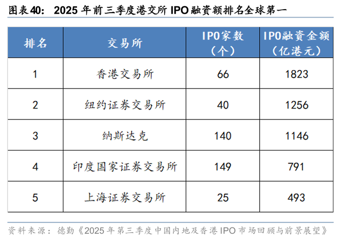 券商国际业务以香港为桥头堡,受益于香港资本市场制度优势和规模提升。在国际业务的扩张路径上,中资券商整体遵循“由近到远”、“由易到难”的路径,多将首站选在香港,通过设立香港子公司开展国际业务。香港市场拥有独特的制度优势,如IPO审核条件更包容、配售可采用“先旧后新”机制提高再融资效率、采取与国际发达市场相同的T+0交易机制等。且近年来,香港资本市场制度优势仍在不断加强,如2024年引入库存股机制,2025年推出“科企专线”,允许以保密形式递表等。在此背景下,香港市场成为优质资产上市的首选市场之一,2025年前三季度港交所IPO融资额排名全球第一(据德勤统计);香港市场规模持续扩大,Q3末港交所总市值排名全球第四(据彭博数据)。