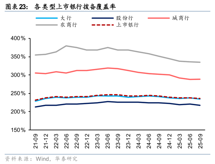 5) 资产质量方面,近年来城投、地产政策组合拳持续落地,极端风险担忧大幅缓释。预计账面不良率保持平稳,上市银行拨备水平较为充足,反哺利润仍有空间,预计26E不良、拨备走势平稳,信用成本小幅下行至0.60%。