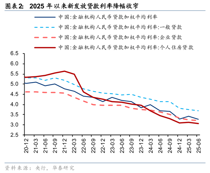 央行强调平衡好“支持实体经济与保持银行体系自身健康性”,重视银行合理息差与利润空间。25Q1货政报告首次写入平衡好“支持实体经济与保持银行体系自身健康性的关系”,重要性与“平衡好短期与长期、稳增长与防风险、内部均衡与外部均衡的关系”并列,并在此后延续该表述,表明监管层已充分认识到,健康的银行体系是服务实体经济的前提。如果银行因净息差过薄而导致盈利能力大幅下滑、资本补充困难,最终会削弱其信贷投放能力和抗风险能力,不利于实体经济。事实上,2023年以来央行多次提及维护商业银行合理息差和利润空间,银行单边让利趋势已明显改善。即使2024年在内外部冲击影响下,央行多次调整政策利率与存量按揭利率,稳定经济发展动能,但同时辅以更大力度的存款利率下行政策,缓和银行息差下行压力。2025年政策利率调整幅度明显趋缓,截至目前仅下调1次,且通过行业自律约束新发贷款利率(如3月底叫停消费贷无序低价竞争),带动银行新发贷款利率降幅明显收窄。