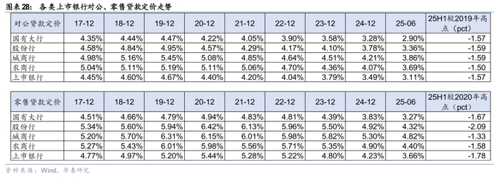 1) 规模方面,上半年上市银行贷款增速平稳,量上同比略多增。考虑到实体、零售修复趋势仍待观察,且关税政策反复对需求或有扰动,我们预计26年银行整体信贷增量较25年基本持平,增速略降,预计26E贷款同比+7.4%。